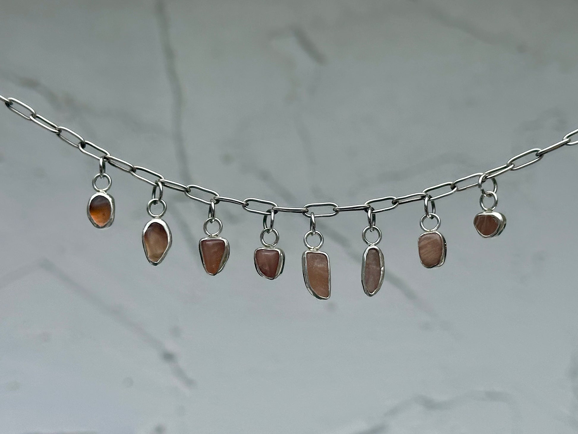 Beautifully versatile, these pieces invite you to play— stack them, link one to a paperclip chain, adorn your favourite hoops, or wear a single charm on your everyday chain for a refined, elevated touch. Each charm is handcrafted in sterling silver and set with semi-precious stones, creating soft variations that make every piece one of a kind.